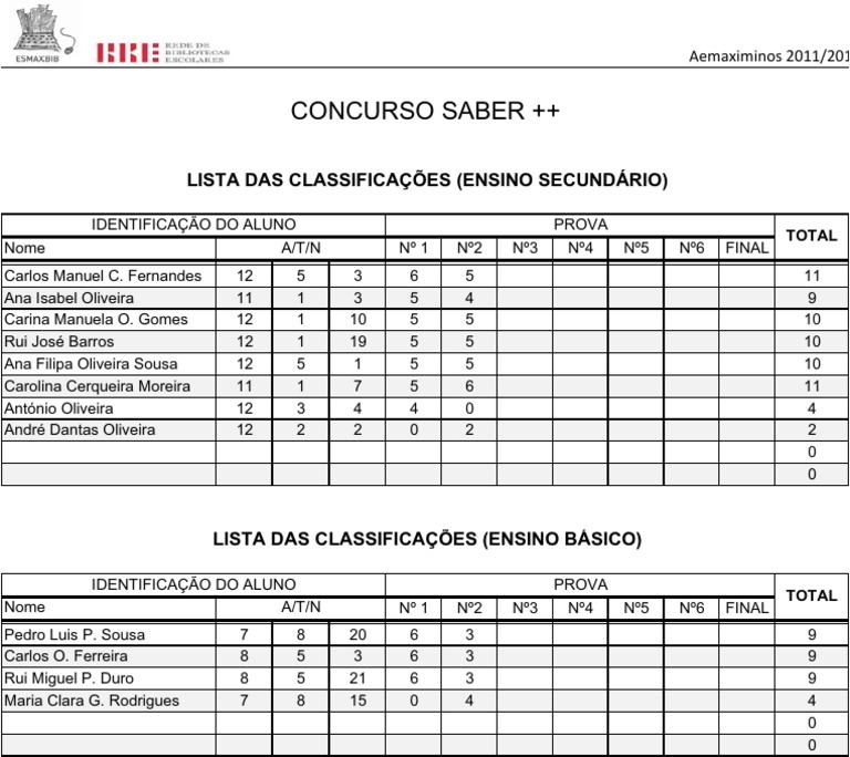 LISTA DAS CLASSIFICAES (ENSINO SECUNDRIO)