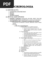 Libri: Malattie del sistema endocrino e del metabolismo Franco Cavanni Manuale di endocrinologia clinica Attanasio Harrison, medicina interna Le domande vertono sugli argomenti fatti a lezione (molte riguardo ai casi clinici). La regione ipotalamo ipofisaria: lipofisi grande circa 0.8-1 cm. Ricorda che collegata allipotalamo tramite delle fibre nervose. Molto importante anche il circolo portale ipofisario. Cellule Gh secernenti 50% (occhio, non la patologia ipofisaria pi frequente ! Il GH viene prodotto dallipofisi in risposta a stimoli ipotalamci: GHRH e somatostatina essa considerata il principale ormone inibitorio e viene sfruttata anche come farmaco), prolattina 15 % (dopamina inibisce la secrezione di prolattina), ACTH 20% (CRH ipotalamico stimolatorio, leffetto inibitorio non ben conosciuto. molto importante la secrezione glico e mineralcorticoide dal surrene), LHFSH 10% (le gonadotropine vanno sempre assieme, anche dal punto di vista dellanalisi diagnostica. GnRH il fattore di rilascio), TSH 5% (TRH. Probabilmente stimola anche la secrezione di prolattina). Lipofisi posteriore secerne vasopressina (ADH) e lossitocina (importantissimo durante il parto e nellallattamento). GH: promuove la crescita in et pediatrica (STH: ormone somatotropico, il nome corretto) , regola il metabolismo osseo, proteico, glicidico e lipidico (ad ogni et, anche negli anziani). PRL: stimola la secrezione di latte nel puerperio inducendo un comportamento materno. Per secreta anche nel maschio, in virt della sua importanza nella regolazione della secrezione dellinsulina. Ad oggi, non esistono malattie da deficit di secrezione di prolattina. TSH: sintesi e secrezione di ormoni tiroidei con mantenimento del trofismo della tiroide. ACTH: sintesi e secrezione di tutti gli ormoni surrenalici (il surrene produce un botto di ormoni steroidei), regolazione della pigmentazione cutanea (MSH). FSH: sviluppo del follicolo ovarico (primi 14 giorni del ciclo mestruale), stimola la secrezione di estrogeni, progesterone e androgeni (femmina), sviluppo dei tubuli seminiferi e cellule del sertoli nel maschio. LH: induzione dellovulazione, formazione e mantenimento del corpo luteo, secrezione di estrogeni, progesterone e androgeni (femmina), sintesi e secrezione di testosterone nel maschio. ADH: effetto antidiuretico (bilancio idrico), effetto vasocostrittore (regolazione pressione), regolazione della secrezione di ACTH Ossitocina: secrezione di latte, induce le contrazioni uterine durante il parto, effetto antidiuretico e vasocostrittore, determina amnesia per i dolori del parto. Patologie non neoplastiche: - malformazioni (ipoplasia, sella vuota) - patologie genetiche - patologie vascolari (aneurisma, necrosi ischemica) - patologie granulomatose e infiammatorie (sarcoidosi, ipofisite linfocitaria malattia autoimmune) - Sindrome di Shean: emorragia post-partum che causa ipopituitarismo post-gravidico. Sta negli ultimi anni in seguito allimmigrazione, perch queste donne immigrate vivono in condizioni di scarsa igiene e vanno incontro pi facilmente a questa complicanza. - Disturbi metabolici (emocromatosi) - Traumi cranici: molto studiati negli ultimi tempi - Disturbi psichiatrici (amenorrea ipotalamica, anoressia)