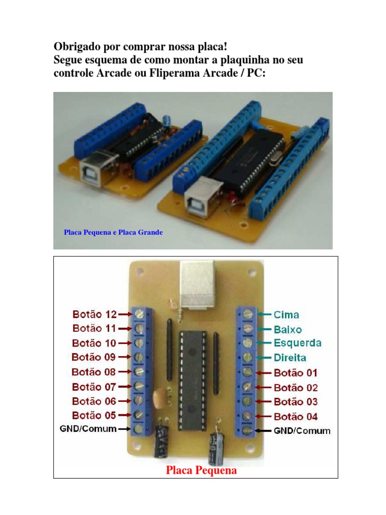 Segue esquema de como montar a plaquinha no seu controle Arcade ou Fliperama Arcade / PC: