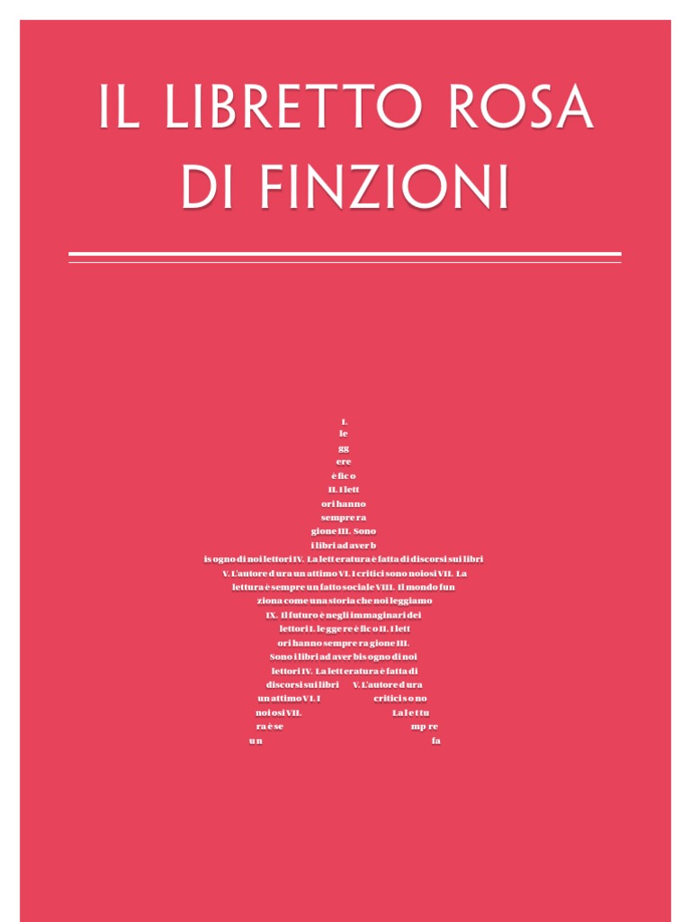 Pubblicato il 12/09/2011 da [Link] Il Libretto Rosa il frutto della discussione e della collaborazione tra i membri della Redazione di Finzioni