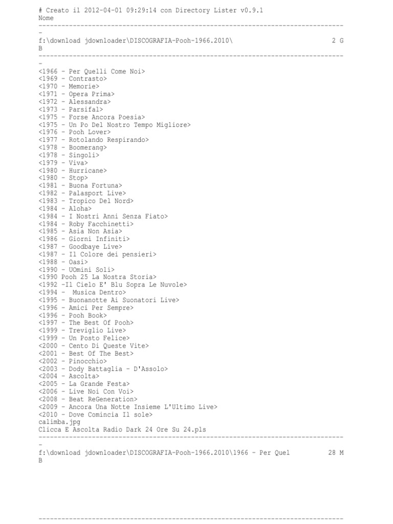 -------------------------------------------------------------------------------f:\download jdownloader\DISCOGRAFIA-Pooh-1966.2010\