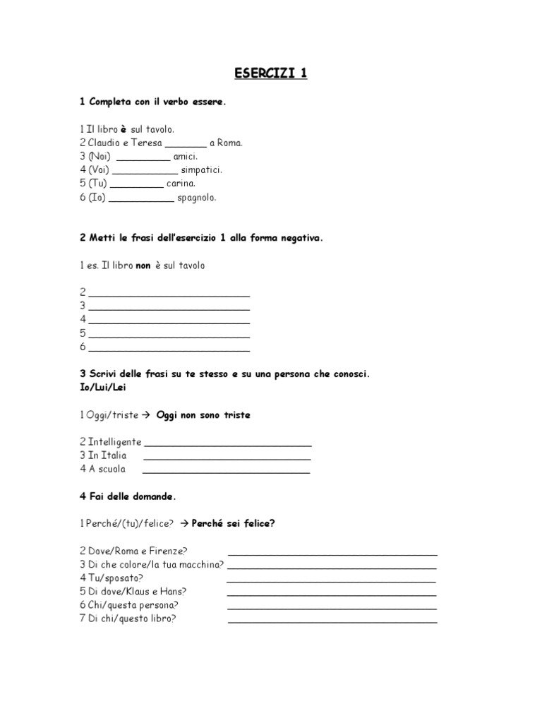 2 Metti le frasi dellesercizio 1 alla forma negativa.