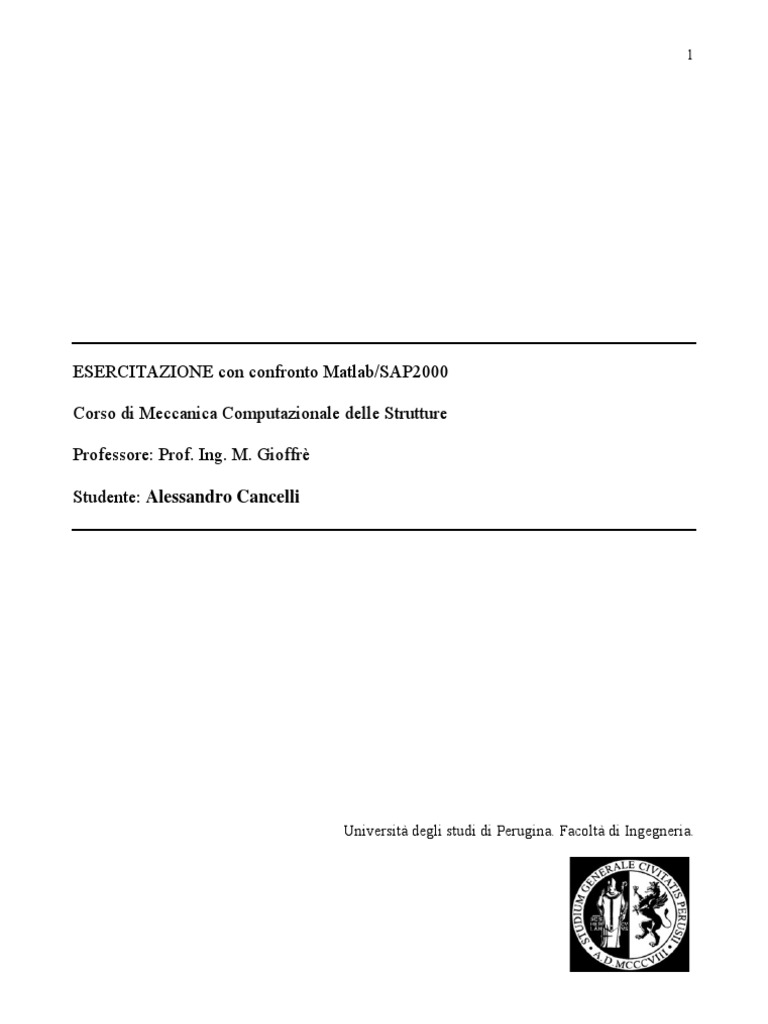 ESERCITAZIONE Con Confronto Matlab-SAP2000
