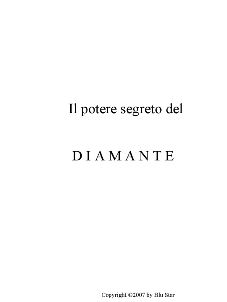 UNA NOTA DELLAUTORE Benvenuti! Questo piccola guida gratuita di Cristalloterapia tratta delle virt e propriet terapeutiche del diamante. I lettori che gi conoscono gli argomenti qui trattati potranno, grazie a questo mio lavoro, ampliare le loro conoscenze sul diamante ed anche sperimentare esercizi e meditazioni atti a risolvere diverse problematiche. Ai lettori che invece non conoscono questi argomenti e sono un po incuriositi oppure scettici come lo ero io anni fa, auguro loro con tutto il cuore di iniziare ad apprezzare, amare e rispettare i nostri meravigliosi minerali che altro non sono che la nostra Madre Terra. Fate buon uso del vostro amico diamante e di tutte queste informazioni. Buona lettura!
