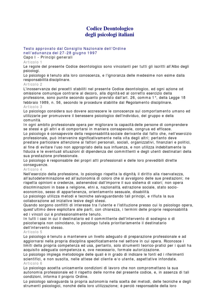 Codice Deontologico degli psicologi italiani