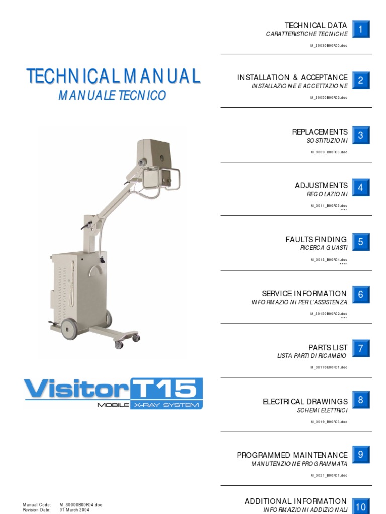 It is advisable to perform the planned maintenance of the unit yearly by following the Planned Maintenance Sheet. Tools, instruments and diagnostic programs available on the unit are described in the Technical Manual chapt. Service information. Checking and adjusting procedures are described in the Technical Manual chapt. Installation & Acceptance and Adjustment. Si raccomanda di eseguire la manutenzione programmata dellapparecchio ogni 12 mesi seguendo la scheda di manutenzione programmata. Lattrezzatura, la strumentazione e i programmi diagnostici disponibili nellapparecchiatura sono descritti nel Manuale Tecnico - Capitolo Informazioni per lassistenza. Le procedure di controllo e di regolazione sono descritte nel Manuale Tecnico Capitoli Installazione & Accettazione e Regolazioni. Nel caso di sostituzione di parti usurate utilizzare sempre ricambi originali. A riguardo consultare il Manuale Tecnico Capitolo Part List.