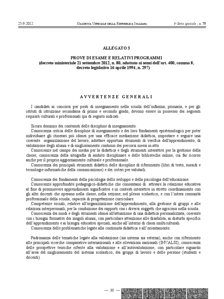 ALLEGATO 3 PROVE DI ESAME E RELATIVI PROGRAMMI (decreto ministeriale 21 settembre 2012, n. 80, adottato ai sensi dellart. 400, comma 8, decreto legislativo 16 aprile 1994, n. 297)