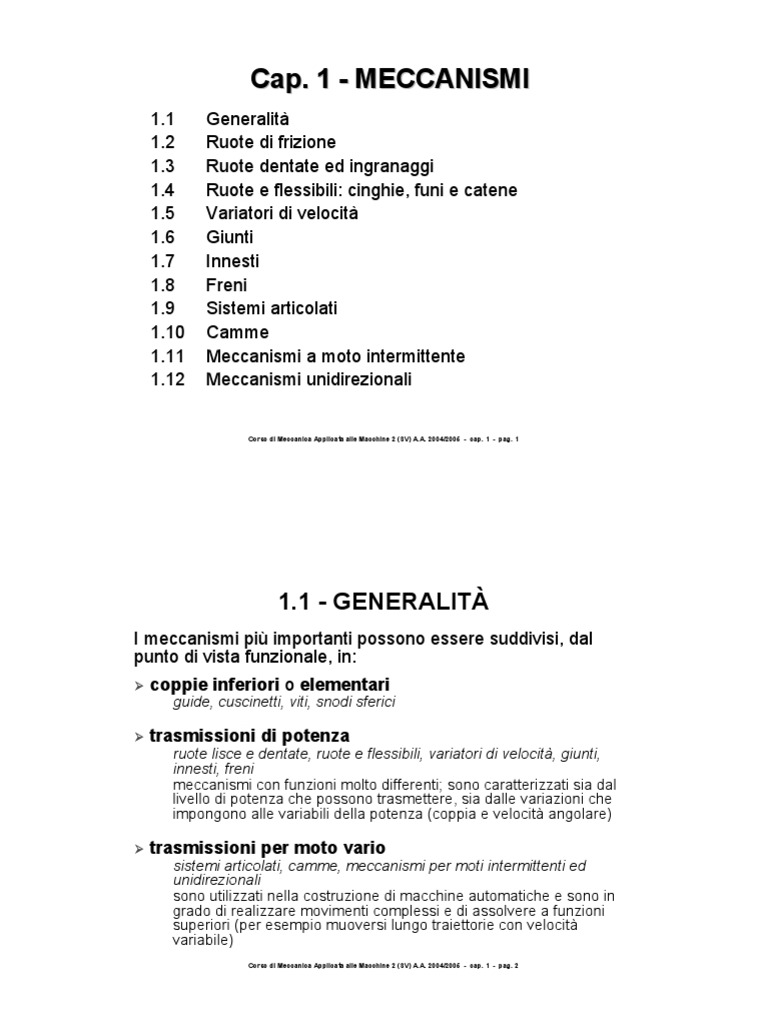 Corso di Meccanica Applicata alle Macchine 2 (SV) A.A. 2004/2005 - cap. 1 - pag. 1