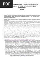 descrizioni lasciateci, troviamo negli Autori una evidente volont di segnalare un luogo, giudicato importante per la storia della nostra citt. Nel fare questo, danno puntuali indicazioni quasi volessero fugare eventuali dubbi sullidentificazione del sito: orientamento, distanza dalla citt, situazione orografica, punti di riferimento topografici, nome del proprietario del fondo. Non mancano nemmeno dati essenzialmente archeologici: rilievo della struttura, tipologia dei materiali affioranti, assaggi per definire la consistenza dello strato di rovine. Gi nel 1924 per la [Link] Girardi ne La topografia di Vicenza romana, definiva il Velo...non attendibile ...sospettando i materiali appartenessero al vicino acquedotto, ribadendo comunque la presenza nel sito di laterizi bollati. Ancora nel 1938, in pieno culto della romanit, il comandante della Giovent Italiana del Littorio di Vicenza, Alessio de Bon, appassionato archeologo ed autore di numerosi studi ancor oggi validissimi, d alle stampe Romanit del territorio vicentino dove, alla voce Brotton, presenta liscrizione (gi nelle raccolte settecentesche, ma poi scomparsa), di Quinto Minucio, un non-vicentino appartenente alla trib Emilia, che reca le coordinate del settore agrario riservato allatto della divisione del territorio vicentino, tra i veterani delle legioni od altri aventi diritto, e, citando lautrice precedente, ne trae le medesime conclusioni. Su questi studi e affermazioni, cal il silenzio e loblio. Nel 1965, fuori porta S. Croce, alla fine della contrada del Brotton, tra viale Ferrarin e via Gioberti, si estendeva una striscia di campi coltivati di propriet di A. Dal Santo. Il terreno, per sua natura, era sopraelevato nel punto pi alto, di circa tre metri rispetto alle strade circostanti, s da formare un gradiente, ed era anche il luogo dei giochi di noi ragazzi. Un giorno comparvero ruspe e camion: il