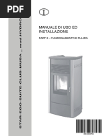 4.4. CONDOTTO PER SERBATOIO SUPPLEMENTARE (Accessorio) ............................................................ 43 4.5. DISPLAY PANNELLO COMANDI ...................................................................................................... 44 4.5.1. Logica pannello comandi ......................................................................................................... 44 4.6. SETTAGGI DA ESEGUIRE PRIMA DELLA PRIMA ACCENSIONE ........................................................... 46 4.6.1. Regolazione dellora e del giorno corrente ................................................................................ 46 4.6.2. Impostazione della lingua........................................................................................................ 47 4.6.3. Procedura scelta ricetta .......................................................................................................... 48 4.7. REGOLAZIONE DELLA TEMPERATURA ACQUA IN CALDAIA............................................................... 48 4.8. PRIMA ACCENSIONE ..................................................................................................................... 49 4.8.1. Accensione/spegnimento da pannello di controllo .................................................................. 49 4.8.2. Nota sulla prima accensione .................................................................................................... 49 4.9. MODALITA DI FUNZIONAMENTO ................................................................................................... 50 4.9.1. Concetto di funzionamento...................................................................................................... 50 4.9.2. Modalit automatica ............................................................................................................... 50 4.9.2.1. Sonda Ambiente .............................................................................................................. 50 4.9.2.2. Collegamento termostato ambiente esterno (3) o serbatoio accumulo (3) ............................. 51 4.9.3. Modalit automatica con AUTO-ECO ........................................................................................ 52 4.9.3.1. Attivazione/disattivazione modalit AUTO-ECO ................................................................... 53 4.10. LA VENTILAZIONE ARIA CALDA SUITE-CLUB-MUSA 22 KW ........................................................... 54 4.11. FUNZIONALITA SLEEP ............................................................................................................... 55 4.12. IL CRONO ................................................................................................................................. 55 4.12.1. Giorno corrente e orologio ................................................................................................... 55 4.12.2. Attivazione CRONO e scelta di un programma........................................................................ 56 4.12.3. Disattivazione del CRONO. ................................................................................................... 57 4.13. PROGRAMMI SETTIMANALI E GIORNALIERI PRE-IMPOSTATI........................................................ 57 4.13.1. Programmi settimanali ......................................................................................................... 57 4.13.2. Programmi giornalieri .......................................................................................................... 59 4.14. ESEMPIO PRATICO DI PROGRAMMAZIONE GIORNALIERA ............................................................ 60 4.14.1. Impostazione di un programma giornaliero............................................................................ 60 4.15. LE SICUREZZE ........................................................................................................................... 61 4.16. SEGNALAZIONE DEGLI ALLARMI ................................................................................................. 62 4.17. Uscita dalla condizione di allarme ................................................................................................ 64 4.17.1. Blocco della stufa ................................................................................................................ 64 5. MANUTENZIONE E PULIZIA ............................................................................................................ 65 5.1. PULIZIE QUOTIDIANE O SETTIMANALI A CURA DELLUTENTE ......................................................... 65 5.1.1. Prima di ogni accensione o quotidianamente............................................................................. 65 5.1.2. Controllo e pulizia braciere ogni 2 / 3 giorni .............................................................................. 65 5.1.3. Pulizia dello scambiatore e del vano sottobraciere ogni 2/3 giorni ............................................... 66 5.1.4. Pulizia del vetro...................................................................................................................... 67 5.1.5. Pulizia del filtro dellaria .......................................................................................................... 67 5.1.6. Pulizia superfici inox e satinate ................................................................................................ 67 5.1.7. Pulizia parti verniciate ............................................................................................................. 67 5.2. PULIZIE A CURA DEL TECNICO SPECIALIZ-ZATO ............................................................................ 68 5.2.1. Pulizia dello scambiatore di calore e del fascio tubiero ............................................................... 68 5.2.1.1. PULIZIA SCAMBIATORE E FASCIO TUBIERO (EGO e STAR): ................................................ 68 5.2.1.2. PULIZIA SCAMBIATOR