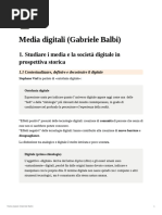 non una sfera indipendente della vita sociale, ma parte di ci che rende possibile la societ, costitutiva della societ. MODELLAMENTO SOCIALE:> processo di modellamento reciproco in cui lo sviluppo tecnologico e le pratiche sociali si co-determinano ora: crescente mobilit di persone, disposizione di + capitale globale, distribuzione diverso dellinfo, delle immagini e dellaudience 2 modalit di modellamento sociale: 1. ricombinazione: cio la continua ibridazione delle tecnologie esistenti e delle innovazioni nelle reti tecniche e istituzionali interconnesse; modalit che ha 2 forme, la convergenza e la divergenza. le tecnologie dei new media sono continuamente rinnovate, frequenti novit e cambiamenti, nuove caratteristiche e opzioni sono introdotte. i new media sono costruiti su elementi pre esistenti ma diversamente dai mass media. le forme e i generi dei new media continuavano a disarmarsi, ricombinarsi e proliferare; i media + vecchi diventano spesso il contenuto di quelli + nuovi. RIMEDIAZIONE: continuo processo in cui i vecchi media vengono presi, rimodellati o assorbiti da quelli nuovi (BLOG=bacheche; SMS=bigliettini) 2. la metafora della rete: afferma che la rete punto-punto diventa larchetipo dellorganizzazione sociale e tecnica contemporanea; interconnessione ampia e multipla in cui sono radicati molti+ punti o nodi; questa modalit rappresenta il presupposto che sta alla base della difesa e delle critiche della globalizzazione ed 1 elemento fondamentale nei discorsi che riguardano la sicurezza, comunit ecc 2 conseguenze delle tecnologie dei new media: 1. UBIQUITA=>idea secondo cui i media (ovvero dei risultati socio tecnici del processo di modellamento reciproco) influenzano chiunque nella societ in cui vengono utlizzati. es; identificazione del problema del digital divide divario digitale: esso si basa sul presupposto che lubiquit delle ICT un bene pubblico; il modello di accesso + spesso utilizzato dalle ICT la telefonia. 2. INTERATTIVITA: legata a canali + nuovi cio la selettivit e la possibilit che le tecnologie mediali offrono agli utenti nelle loro scelte delle fonti di info e nelle loro interazioni con altre persone. NEW MEDIA dai MASS MEDIA anche per: iMMEDIATEZZA-REATTIVITA- PRESENZA SOCIALE DELL iNTERAZIONI MEDIATA DAI NEW MEDIA. ricombinazione, struttura a rete, ubiguit e interattivit distinguono i mass media dai nuovi media. oggi linterazione e i contenuti mediati sono socialmente diversificati, non orientati solo alle masse, sono canali tecnologicamente convergenti e i processi di comunicazione mediata sono interattivi. le tecnologie dei NEW MEDIA e dellinformazione: a. danno vita a modalit nuove e + attive di interazione con i media b. sono entit potenti che producono messaggi e influenzano il comportamento e la societ, danno alle persone , agevolano la comunicazione interpersonale mediata. tre componenti principali delliNTERATTIVITA: 1 caratteristiche interattive: di un mess per essere considerato interattivo . 3
