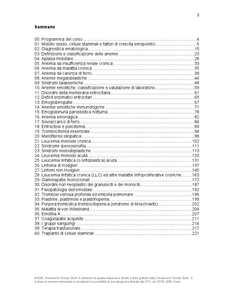 2006, Fondazione Ferrata Storti. Il contenuto di questa dispensa fornito a titolo gratuito dalla Fondazione Ferrata Storti. Si