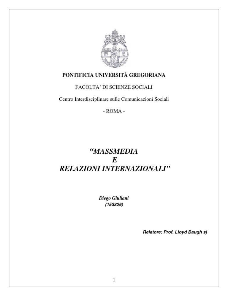 “MASS MEDIA E RELAZIONI INTERNAZIONALI”