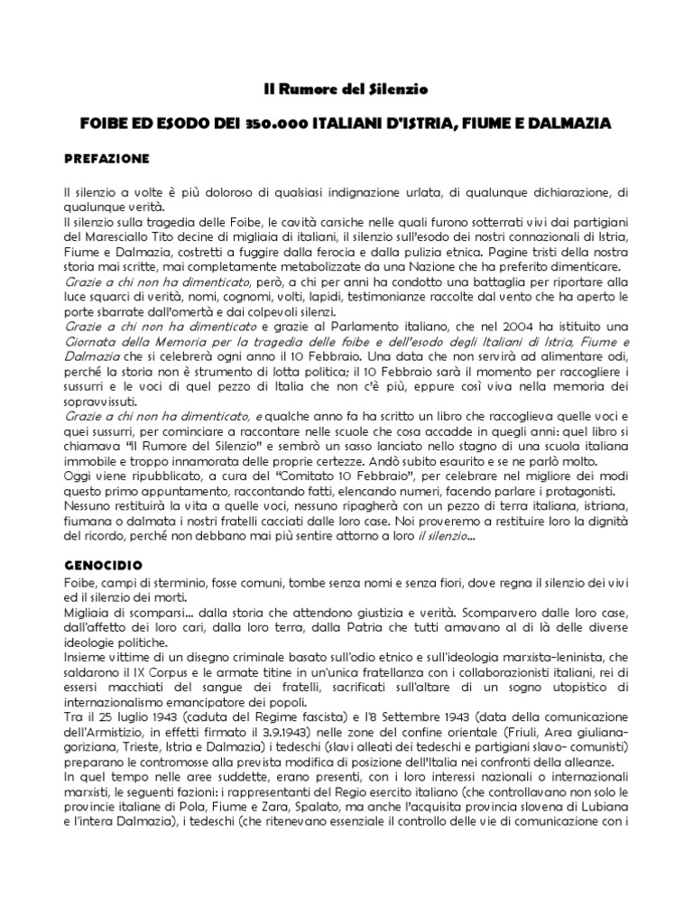 Questi i fatti che condussero all’esodo di 350.000 nostri connazionali. Per anni