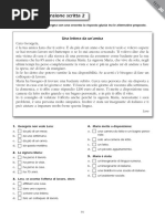 4. I dieci ragazzi, attraverso lesperienza su Nave Italia A si impegnano in attivit molto rischiose B imparano il mestiere di marinaio C si sentono parte attiva di un gruppo D si abituano a non giudicare gli altri 5. Questi ragazzi, dopo la crociera formativa A eviteranno di arrendersi di fronte alle difficolt B toveranno facilmente un lavoro su Nave Italia C inviteranno gli altri a seguire il loro esempio D rimarranno appassionati alla vita di mare 2 testo LE AVVENTURE DI BIRILLO E BISCOTTO Mi chiamo Isabella e voglio parlarvi di Birillo, il mio gatto, che potrebbe essere chiamato Indiana Jones per le sue avventure spericolate. Da quando nella mia famiglia, le sue prime estati le ha trascorse sui muretti dei terrazzi a picco sul cemento del cortile. Il problema che abitiamo al quarto piano e vederlo correre, saltando dai rami delle piante sul terrazzo o dormire in bilico sopra la porta del garage per aspettare il nostro ritorno e farci festa capovolgendosi, non era rassicurante. A volte, soprattutto di notte, rientrava in casa saltando dal terrazzo ai davanzali delle finestre, per venirci a trovare a letto. Birillo spar una sera: non vedendolo venire a mangiare pensai che si fosse nascosto da qualche parte e guardai dappertutto, ma non lo trovai. Allalba, dopo una notte insonne a rigirarmi nel letto, lo cercai nel cortile, dietro le siepi e per strada, senza successo. La mancanza del cadavere o di tracce di sangue mi facevano sperare che da qualche parte doveva pur essere finito! Si mobilitarono anche alcuni vicini, cercandolo nei cortili della zona e un condomino del secondo piano controll il vicino campo di calcio: tutto inutile. Verso mezzogiorno, mi chiam linquilino che abita sotto di me: Ho trovato il suo gatto! nascosto dietro il mio condizionatore mi disse. Corsi gi. Birillo, spaventatissimo, sentendo la mia voce, schizz alla porta e vol a casa dove si accoccol su un letto e non si mosse per alcuni giorni. Si era fatto male ad unanca perch, per calarsi dal terrazzo, aveva sbattuto su una pensilina di ferro ed era atterrato male. Nonostante ci, un giorno, Birillo cadde nuovamente sul solito terrazzo sottostante, ma, questa volta, in assenza degli inquilini. Per recuperarlo calai una corda con un cestino. Birillo approfitt di questo ascensore e lo riportai a casa. Ormai ne avevo abbastanza. Dal ferramenta acquistai una rete metallica per il terrazzo e chiusi ogni via di fuga per impedirgli di farsi ancora male. Credevo di aver risolto il problema ma non avevo tenuto conto dellarrivo di Biscotto, il gatto di mia figlia. La prima vacanza estiva che trascorse con me aveva sette mesi. Un giorno suon alla porta linquilino del terzo piano che, vedendo Birillo in casa, mi fece : Ah, ma il suo gatto qui, allora di chi quello che ho sulla tenda del balcone? Mi precipitai gi e feci scendere Biscotto attirandolo con un croccantino. Lo presi in braccio, ma lui non sembrava per niente spaventato, anzi, rientr in casa tutto contento. Non lho mai raccontato a mia figlia per non farla preoccupare, visto che tutto si era risolto bene. Per, poi, ho rinforzato la protezione del terrazzo. 6. Birillo un gatto che A combina guai quando viene lasciato da solo B fa preoccupare molto spesso i suoi padroni C ha la particolarit di passare la notte fuori casa