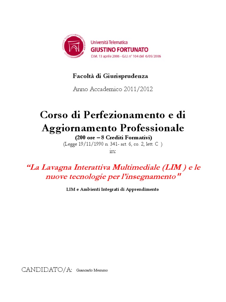 Corsista: Giancarlo Memmo La Lavagna Interattiva Multimediale (LIM ) e le nuove tecnologie per linsegnamento