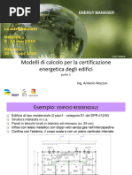 Walter Pennati Coaer Coordinatore GL 503 CTI La UNI TS 11300 Parte 3. Contenuti e metodi applicati L'intervento ha illustrato in dettaglio la metodologia di calcolo adottata che, partendo da quello del fabbisogno di energia termica per il raffrescamento degli edifici, determinata in base alla parte 1 della norma, consente di valutare il carico latente dovuto ai trattamenti dell'aria e di determinare le perdite dei vari sottosistemi che compongono l'impianto (emissione, distribuzione, regolazione, produzione) e l'energia primaria necessaria per la climatizzazione estiva, compresi i consumi degli ausiliari elettrici. Per la valutazione del rendimento di produzione la norma assume come dati di partenza quelli a carico parziale delle macchine fornite dai produttori in base alla norma EN 14825, opportunamente interpolati in funzione del fattore di carico dell'edificio e corretti per tener conto delle reali temperature di funzionamento e delle condizioni di installazione. Augusto Colle Presidente SC6 CTI La UNI TS 11300 Parte 4. Contenuti e metodi applicati L'intervento ha illustrato in modo molto dettagliato i contenuti della parte 4 della norma. La UNI/TS 11300-4 definisce infatti le modalit di calcolo dei sistemi di generazione che utilizzano fonti rinnovabili e degli altri metodi di generazione non compresi nella parte 2. La norma consente quindi di calcolare i consumi di energia primaria di sistemi che utilizzano: pannelli solari, pannelli fotovoltaici, generatori a biomasse, teleriscaldamento, pompe di calore, unit di micro e piccola cogenerazione. La norma consente inoltre di valutare l'utilizzo dei vari vettori energetici nel caso di impianti polivalenti e/o polienergetici. L'intervento ha illustrato lo stato di avanzamento di ciascuna parte evidenziando le principali problematiche e criticit, legate soprattutto alla complessit impiantistica. Vincenzo Lattanzi Enea Coordinatore GL 102/SG24 CTI Gli audit energetici quale strumento per la riqualificazione energetica degli edifici esistenti. Progetti di norme tecniche in corso. L'intervento ha evidenziato l'importanza della diagnosi energetica quale strumento per la riqualificazione energetica e, considerando che il tasso di rinnovo del patrimonio edilizio italiano non supera il 2% l'anno, l'assoluta necessit di intervenire sull'esistente al fine di rispettare gli impegni di riduzione dei gas serra assunti a livello comunitario. L'intervento ha inoltre evidenziato come il mercato dell'efficienza energetica e delle energie rinnovabili costituisca un'opportunit di ripresa e rilancio del settore edilizio nell'attuale situazione di crisi economica. Sono stati poi illustrati i risultati di un'indagine nazionale condotta dall'Enea sui consumi degli edifici pubblici (scolastici e del terziario) e delle potenzialit di intervento in tale settore. A conclusione dell'intervento stato illustrato il programma di lavoro che il CTI intende sviluppare per la predisposizione di una linea guida per la definizione di una procedura di diagnosi energetica. Marco Piana Aipe Coordinatore GL 101 CTI I protocolli per la dichiarazione di sostenibilit ambientale: il contributo del CTI. L'intervento ha fornito un'ampia panoramica delle tematiche e dei principali strumenti operativi nel campo della sostenibilit ambientale degli edifici. L'intervento ha illustrato la proposta di Regolamento destinata a sostituire l'attuale Direttiva sui prodotti della Costruzione, evidenziando come sia prevista l'aggiunta di un nuovo requisito essenziale relativo appunto all'uso sostenibile delle risorse naturali, con particolare attenzione al tema della riciclabilit dei prodotti da costruzione, della loro durata in termini di vita utile e dell'utilizzo di materie prime ecologicamente compatibili. Sono stati inoltre illustrati i principali protocolli utilizzati, con particolare riferimento al Protocollo Itaca, al sistema Leed (Leadership in Energy and Environmental Design), all'iniziativa Ecolabel per gli edifici in corso di sviluppo presso il centro Enea di Ispra.