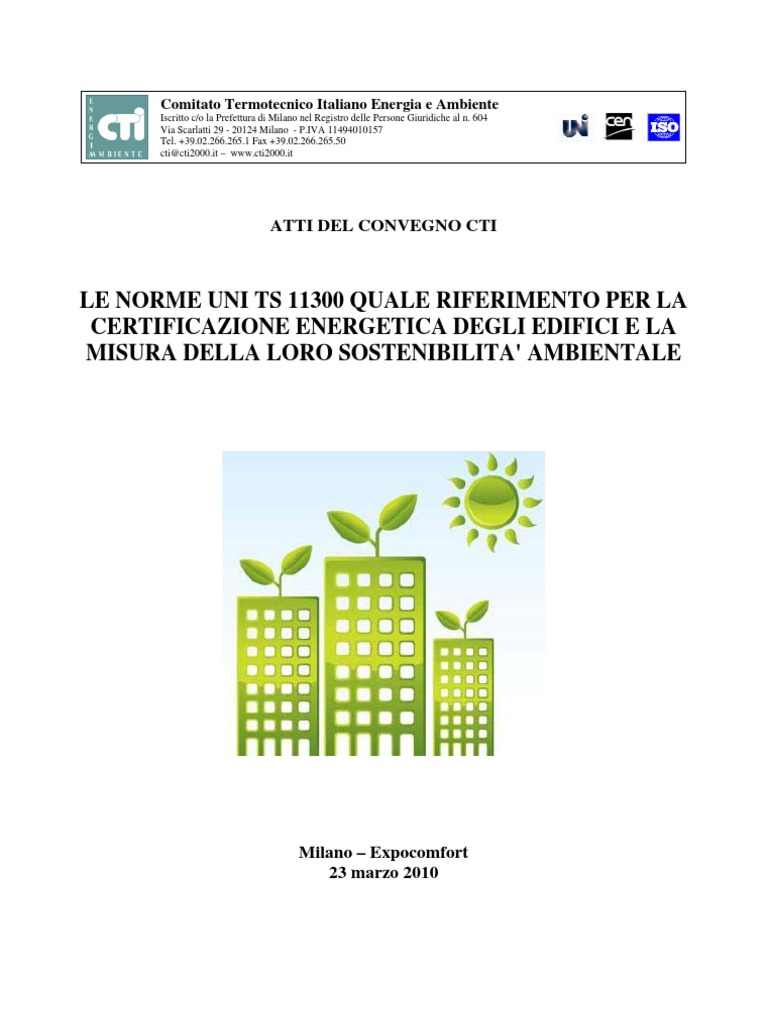 NOTE CONCLUSIVE Gli strumenti per la determinazione delle prestazioni energetiche degli edifici stanno sempre pi perfezionandosi Oggi le 11300 costituiscono un riferimento nazionale di comprovata validit Probabilmente nel giro di due anni le diverse procedure di calcolo in uso in Italia saranno pi uniformi di oggi a beneficio di una comparabilit dei risultati sullintero territorio nazionale Il CTI seriamente impegnato a perseguire questo obiettivo