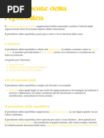 Consiglio Superiore della Magistratura E' composto da 27 membri: Presidente della Repubblica; Presidente della Corte di Cassazione; Procuratore Generale della Corte di Cassazione; 8 membri laici tra professori universitari e avvocati con 15 anni di esperienza; 16 membri togati. Si occupa degli aspetti che riguardano l'impiego e la carriera dei giudici. Provvede infatti alle assunzioni dei magistrati (bandendo i concorsi e nominando le commissioni giudicatrici), alle loro assegnazioni, trasferimenti e promozioni. Presidente della Repubblica Neutrale e super partes; Eletto dal Parlamento con scrutinio segreto (art. 55 comma 2, cost.); 50 anni di et e godere dei diritti civili e politici (art. 84, comma 1, cost.); Una volta eletto presta giuramento alla Costituzione davanti al Parlamento in seduta comune (art. 91 della costituzione); Le sue funzioni sono: 1. Nomina 5 senatori a vita (anch'egli diventa senatore a vita dopo aver terminato l'incarico che dura 7 anni); 2. Nomina il Presidente del Consiglio; 3. Nomina i Giudici della Corte di Costituzionale; 4. Indice le elezioni; 5. Scioglie le Camere, anche una sola di esse, dopo aver sentito i loro Presidenti; 6. Ha il comando delle Forze Armate; 7. Promulga le leggi; 8. Presiede il Consiglio Superiore della Magistratura; 9. Pu concedere la grazia o commutare le pene (art. 87; comma 11 cost.). Il Presidente della Repubblica solo responsabile per altro tradimento o per attentato alla Costituzione. In tal caso viene messo in stato d'accusa dal Parlamento in seduta comune (legge costituzionale n. 1/1989). Corte dei Conti Istituita nel 1862 essa autonoma e indipendente da Governo e pubblica amministrazione (art. 100 comma 2, cost.). Comprende: Il Presidente; Il Consiglio di Presidenza della Corte dei Conti; 2 sessioni per la contabilit pubblica; 2 sessioni per le pensioni pubbliche; 2 sessioni per le pensioni militari; 1 sessione di controllo della autonomie; 1 sessione di controllo per gli affari comunitari e internazionali. La sua funzione disciplinata dalla legge n. 20/1994 ed stata creata per vigilare sulle spese delle amministrazioni pubbliche. 3