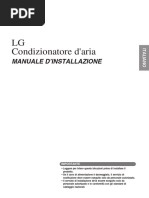 Non collocare apparecchiature che producono fiamme libere in punti esposti al flusso daria proveniente dallunit oppure sotto allunit interna. Ci pu causare una combustione incompleta, oppure lunit pu subire deformazioni dovute al calore. Non ostruire gli ingressi e le uscite dellaria. La riduzione del flusso daria pu causare prestazioni insufficienti o problemi. Non stare in piedi o seduti sullunit esterna. Per evitare lesioni, non collocare alcun oggetto sullunit e non rimuovere la protezione del ventilatore. Non collocare sotto lunit interna o quella esterna oggetti che devono essere tenuti al riparo dallumidit. In determinate condizioni, lumidit presente nellaria pu condensarsi e gocciolare. Dopo un periodo prolungato di utilizzo, controllare che il supporto e i raccordi dellunit non presentino danni. Non toccare lingresso dellaria e le alette di alluminio dellunit esterna. Ci pu causare lesioni. Lapparecchio non stato progettato per essere usato da bambini piccoli o persone non in buona salute salvo che in presenza di un supervisore. I bambini devono essere sorvegliati per evitare che giochino con lapparecchio. Per evitare carenze di ossigeno, se si utilizzano attrezzature dotate di bruciatori contemporaneamente al condizionatore daria ventilare il locale in misura sufficiente. Prima della pulizia, arrestare il funzionamento, quindi disattivare (off) linterruttore di protezione o scollegare il cavo di alimentazione. Non collegare il condizionatore daria a sorgenti di alimentazione diverse da quella specificata. Ci pu causare problemi o incendi. Disporre il tubo flessibile di scarico in modo da garantire uno scarico senza ostacoli. Uno scarico incompleto pu allagare ledificio, bagnare gli arredi e cos via. Non sistemare oggetti nelle immediate vicinanze dellunit esterna ed evitare che foglie e altri detriti si depositino intorno allunit. Le foglie rappresentano un giaciglio per i piccoli animali che potrebbero penetrare allinterno dellunit. Allinterno dellunit, questi piccoli animali posso essere causa di malfunzionamenti, fumo o incendi se entrano in contatto con le parti elettriche. Non azionare il condizionatore daria con le mani bagnate.