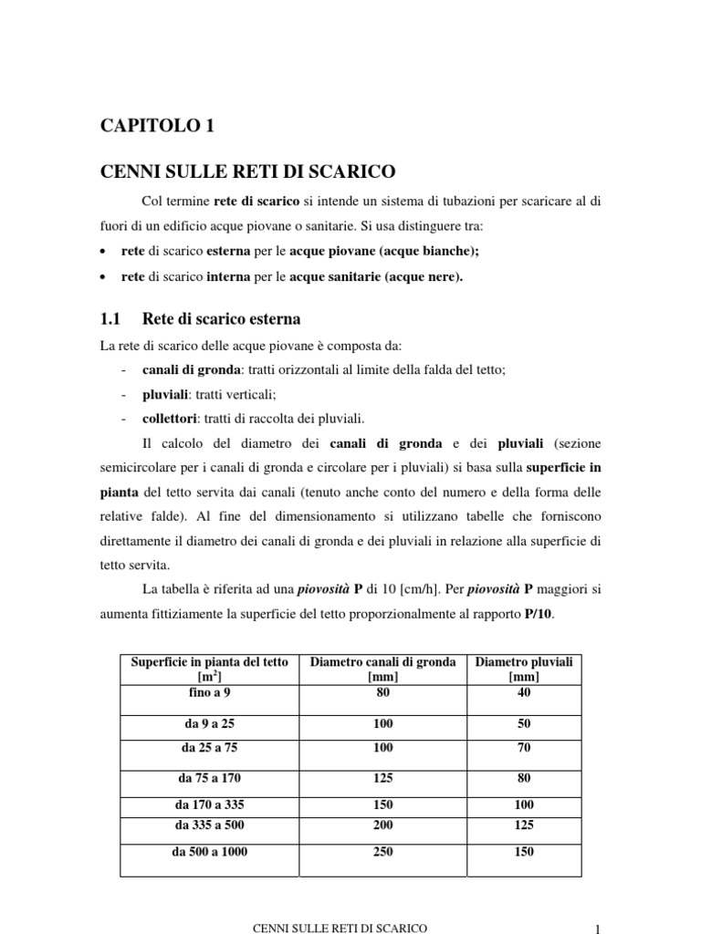 CAPITOLO 1 CENNI SULLE RETI DI SCARICO