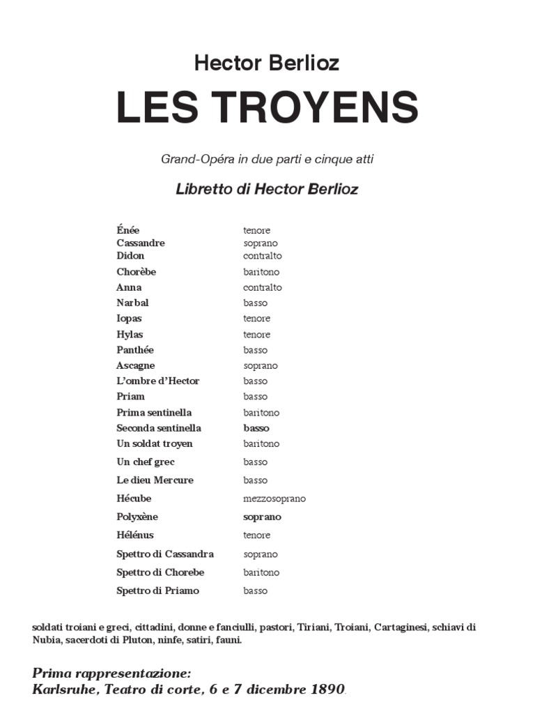 Berlioz: Les Troyens - Atto primo Non pi amore, canti dallegria, non pi dolci, teneri sogni! Bisogna subire la legge inesorabile del destino orrendo che mi schiaccia! Sventurato sovrano! Nelleterna notte, ecc. (Piomba in una tenera visione.) Corebo! Deve partire e lasciare la Troade [N3 Duetto] (Corebo avanza vivacemente) lui! Cest lui! Chorbe! il faut quil parte et quitte le Troade. Plus damour, de chants dallgresse, plus de doux rves de tendresse! De laffreux destin qui moppresse il faut subir linexorable loi! Malheureux Roi! dans lternelle nuit, etc.