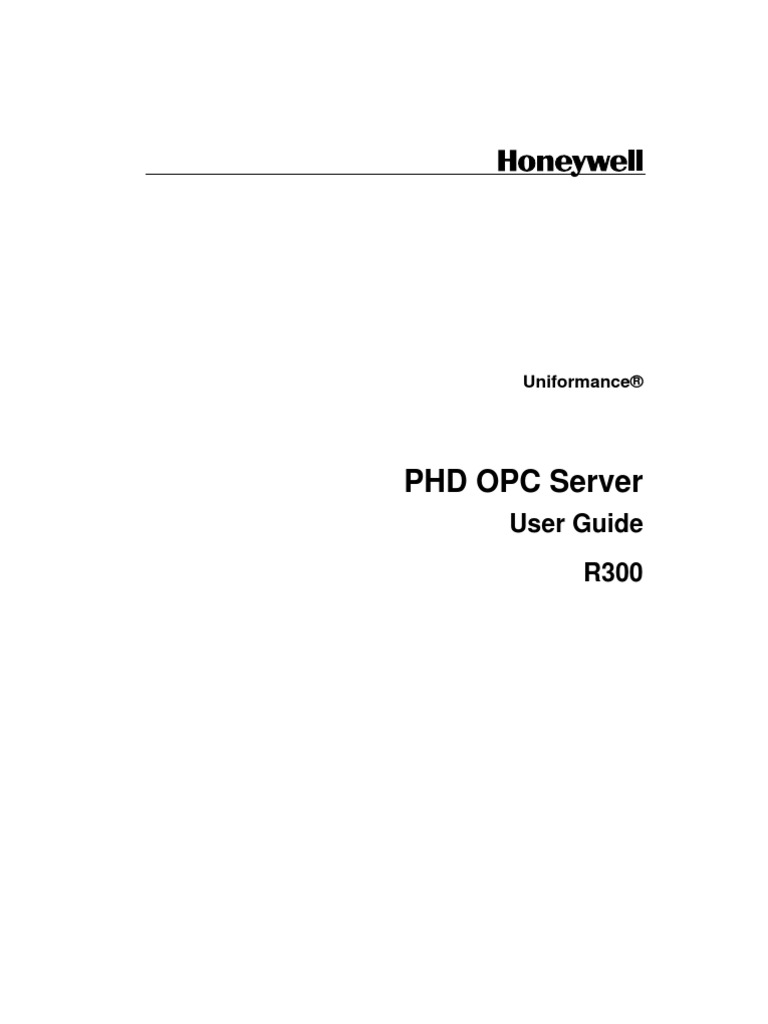 Document Title Uniformance - PHD System Manual Uniformance - PHD User Guide Uniformance PHD Installation Guide Uniformance - Database System Specification and Technical Data OLE for Process Control Data Access Standard Version 3 OLE for Process Control Data Historical Data Access Version 1.2 Document ID pim0301 pim0201 in6001 ph03300 See NOTE See NOTE