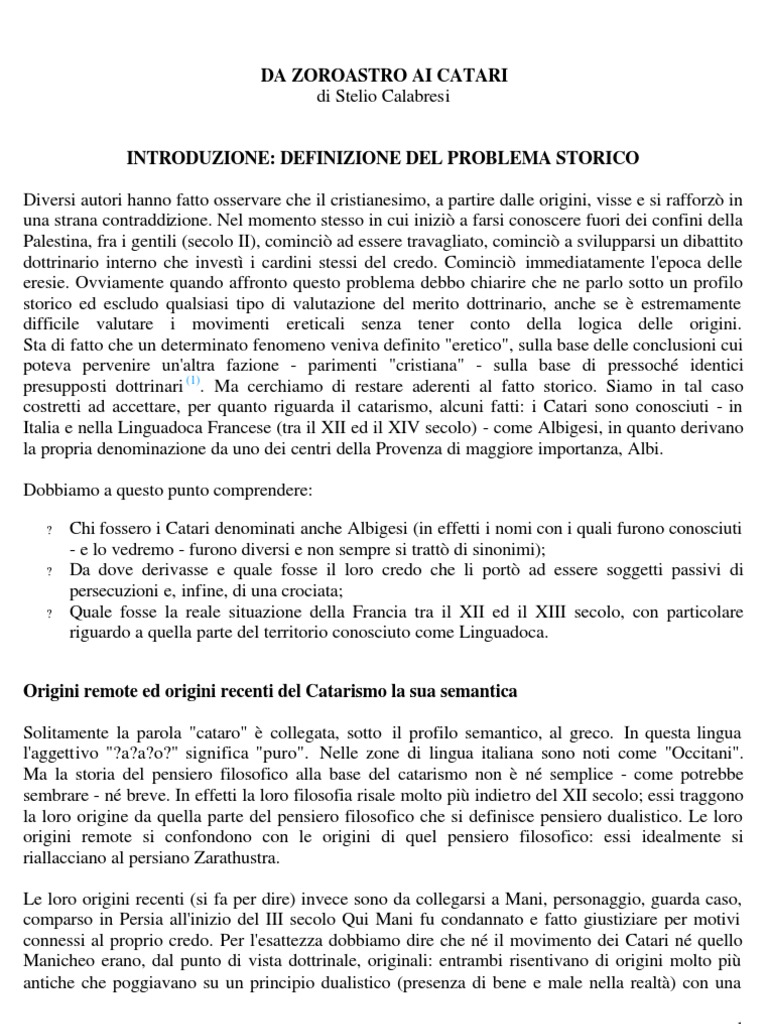 Da Zoroastro Ai Catari