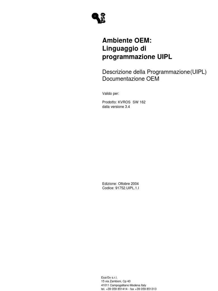 UIPL (User Interface Programming Language) un linguaggio che consente di creare delle pagine con cui si possono visualizzare, scrivere e/o modificare i dati contenuti nella memoria dei Controlli Numerici serie KVARA.