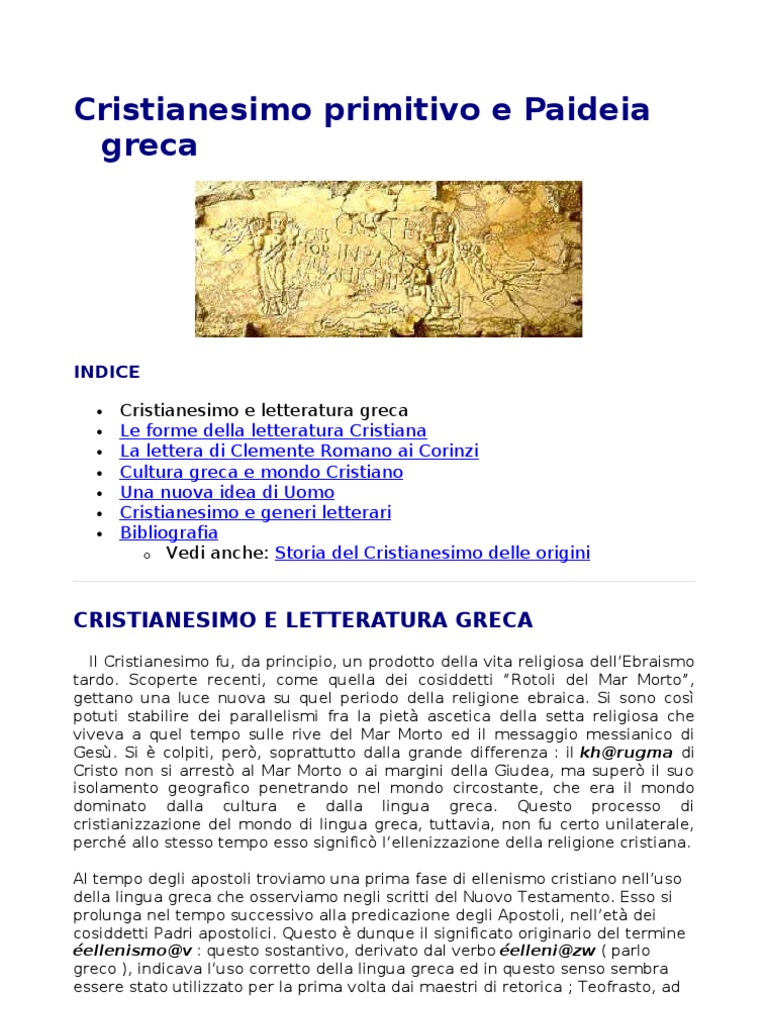Cristianesimo e letteratura greca Le forme della letteratura Cristiana La lettera di Clemente Romano ai Corinzi Cultura greca e mondo Cristiano Una nuova idea di Uomo Cristianesimo e generi letterari Bibliografia o Vedi anche: Storia del Cristianesimo delle origini