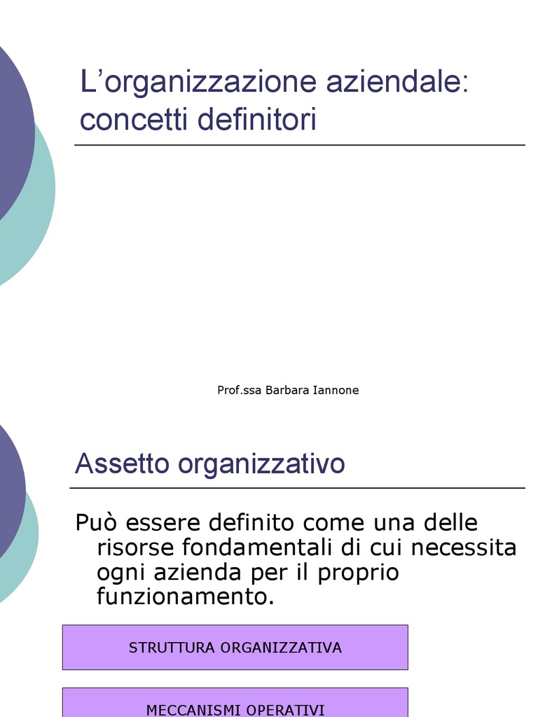 Lorganizzazione aziendale: concetti definitori