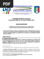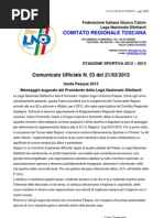 Si allega al presente C.U.: Circolare n. 47 del 10/04/2013 della L.N.D. riguardante copia della nota dellUfficio Coordinamento Attivit Politiche e Istituzionali del C.O.N.I. n. 0000031/13 dell8/04/2013.