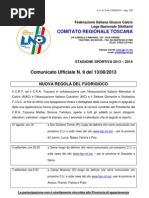 Si allega al presente C.U.: C.U. n. 145/A del 5/04/2013 della F.I.G.C. riguardante modifica ad art. 30 del Regolamento della F.I.G.C.