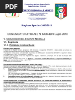 Si trascrive stralcio della CIRCOLARE N.1 DEL S.G.S. dell8.3.2013: . Omissis. Torneo Giovani Calciatori, feste finali Si ricorda che la Festa Finale regionale, dovr prevedere le pi opportune modalit di svolgimento favorendo momenti di promozione dellattivit femminile, oltre che occasione di incontro, confronto, formazione e informazione da rivolgere ai presenti (tecnici, dirigenti, genitori, giovani calciatrici) come indicato nello specifico paragrafo. Per quanto riguarda il Torneo Giovani Calciatrici, pertanto, nella festa regionale, dovr essere prevista la partecipazione contemporanea di almeno 3 (tre) societ. Womens Football Week Si comunica che, come gi avvenuto la scorsa stagione sportiva, anche per questanno prevista lorganizzazione di un evento specifico che metta in evidenza il calcio femminile, dedicandole la settimana dal 6 al 12 maggio, denominandola: Womens Football Week Ad ulteriore sviluppo di quanto realizzato nella passata stagione sportiva, intenzione della FIGC di dare ampio risalto alliniziativa e pertanto lattivit verr sollecitata nel corso dellintera settimana attraverso iniziative di carattere sportivo, manifestazioni, incontri nelle scuole, come, ad esempio, quelle che hanno aderito al progetto il Calcio a 5 o nei Centri per lo sviluppo dellattivit femminile avviati in territorio in collaborazione con le Societ. Il format delliniziativa con tutte le opportunit e lidentit promozionale che caratterizzer la settimana verranno inviati in apposita circolare. Ovviamente, nelle manifestazioni programmate in particolare nel week-end 11-12 maggio, dovr essere prevista la partecipazione del maggior numero di bambine e ragazze possibili, coinvolgendo sia le tesserate, (comprese le ragazze della Rappresentativa Regionale Under 15 Femminile) che non (alunne che partecipano ai progetti scolastici e quante hanno passione per il calcio, magari accompagnate dalle calciatrici tesserate). Rappresentative Regionali Under 15 Femminili Come avr indicato nel regolamento del torneo in questione, anche in questa stagione sportiva le gare si svolgeranno attraverso un confronto tra 9 (nove) calciatrici per squadra appartenenti alla categoria Giovanissimi (nate dall1.1.1998 che abbiano compiuto il dodicesimo anno di et) selezionate secondo quanto ver riportato nel medesimo regolamento (numero massimo di 9 calciatrici nate nel 1998). Relativamente alle modalit con cui effettuare i raduni di selezione delle giovani calciatrici, vista lindiscutibile necessit di promuovere lattivit femminile giovanile sullintero territorio nazionale, si auspica che la realizzazione dei relativi raduni si svolga in diverse realt calcistiche, al fine di dare la pi ampia visibilit a tale movimento, organizzando anche incontri di carattere amichevole con squadre formate da ragazzi di pari et o di et inferiore (tenendo in opportuna considerazione il livello tecnico, tattico e fisico). Qualora fosse possibile, si auspica che possano essere organizzate una o due feste a carattere provinciale e/o interprovinciale e/o regionale che vedano la partecipazione delle giovani calciatrici selezionate sul territorio, evitando alle ragazze spostamenti troppo ampi.