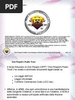 Il OPPT in se stesso consiste in ogni persona del pianeta, nel pianeta in se stesso e nel Creatore. I fiduciari del OPPT sono un gruppo di individui molto preparati, inclusi Legali professionisti che, uniti ad un gruppo positivo allinterno del sistema finanziario, hanno portato avanti una vasta indagine sulla enorme frode e ladrocinio attualmente in corso. Dopo aver proceduto con estrema prudenza, OPPT ha concluso che le corporazioni operanti in parvenza di governi del popolo o democratici, e il sistema finanziario stavano commettendo tradimento contro gli abitanti del pianeta senza che questi ultimi ne fossero a conoscenza, disposti e intenzionalmente consenzienti. Attraverso una serie di REGISTRAZIONI dell'ESSERE dellunico popolo di questo pianeta, la terra, laria, i mari e tutte le creature di cui e in cui sono, tutte le affermazioni illegali ed illegittime riguardanti le propriet e le azioni di gestione e controllo di titolari, agenti e beneficiari sono state legittimamente e legalmente debitamente cancellate e pignorate subito dopo dalla loro libera scelta di non porre rimedio ai danni causati. Il report finale dellindagine pu essere trovato qui: [Link] SWIZZERLAND FROM-THE-TREASURY-FINANCE-AG-