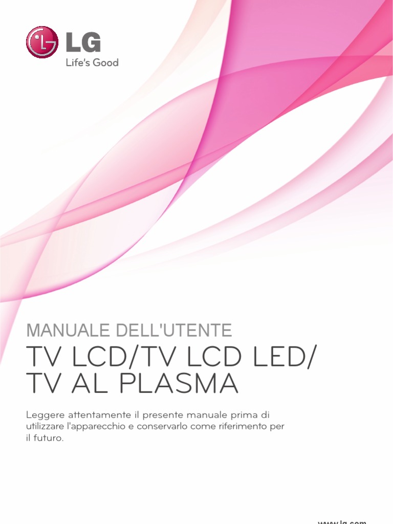 Dichiarazione di conformit La societ LG Electronics Italia S.p.A. dichiara che il televisore a colori LG 42PT250-ZA / 42PT250A-ZA / 42PT250-ZG / 42PT250A-ZG / 50PT250-ZA / 50PT250A-ZA / 50PT250-ZG / 50PT250A-ZG / 50PV250ZA / 50PV250A-ZA / 60PV250-ZA / 60PV250A-ZA / 42PT350-ZD / 42PT350A-ZD / 42PT351-ZC / 42PT351A-ZC / 42PT352-ZB / 42PT352A-ZB / 42PT353-ZA / 42PT353A-ZA / 42PT350-ZK / 42PT350A-ZK / 42PT351-ZJ / 42PT351A-ZJ / 42PT352-ZH / 42PT352A-ZH / 42PT353-ZG / 42PT353A-ZG/ 50PT350-ZD / 50PT350A-ZD / 50PT351-ZC / 50PT351A-ZC / 50PT352-ZB / 50PT352A-ZB / 50PT353-ZA / 50PT353A-ZA / 50PT350-ZK / 50PT350A-ZK / 50PT351-ZJ / 50PT351A-ZJ / 50PT352-ZH / 50PT352A-ZH / 50PT353-ZG / 50PT353AZG / 50PV350-ZD / 50PV350A-ZD / 50PZ250-ZB / 50PZ250A-ZB / 60PZ250-ZB / 60PZ250A-ZB / 42PW450-ZA / 42PW450A-ZA / 42PW451-ZD / 42PW451A-ZD / 50PW450-ZA / 50PW450A-ZA / 50PW451-ZD / 50PW451A-ZD / 50PZ550-ZA / 50PZ550A-ZA / 50PZ551-ZC / 50PZ552-ZD / 60PZ550-ZA / 60PZ550A-ZA / 60PZ551-ZC / 60PZ552-ZD / 42PT450-ZB / 42PT450A-ZB / 42PT450ZH / 42PT450A-ZH / 50PT450-ZB / 50PT450A-ZB / 50PT450-ZH / 50PT450A-ZH / 22LK330-ZB / 22LK330A-ZB / 22LK331-ZA / 22LK335C-ZB / 22LK330-ZH / 22LK330A-ZH / 22LK331-ZG / 26LK330-ZB / 26LK330A-ZB / 26LK331-ZA / 26LK335C-ZB / 26LK330-ZH / 26LK330A-ZH / 26LK331-ZG / 32LK330-ZB / 32LK330A-ZB / 32LK331-ZA / 32LK335C-ZB / 32LK330-ZH / 32LK330A-ZH / 32LK331-ZG / 32LK430-ZA / 32LK430A-ZA / 32LK430-ZG / 32LK430A-ZG / 37LK430-ZA / 37LK430A-ZA / 37LK430-ZG / 37LK430A-ZG / 42LK430ZA / 42LK430A-ZA / 42LK430-ZG / 42LK430A-ZG / 32LK450-ZB / 32LK450A-ZB / 32LK451-ZA / 32LK455C-ZB / 32LK450-ZH / 32LK450A-ZH / 32LK451-ZG / 32LK455-ZA / 37LK450-ZB / 37LK450A-ZB / 37LK451-ZA / 37LK455C-ZB / 37LK450-ZH / 37LK450A-ZH / 37LK451-ZG / 37LK455-ZA / 42LK450-ZB / 42LK450A-ZB / 42LK451-ZA / 42LK455C-ZB / 42LK450-ZH / 42LK450A-ZH / 42LK451-ZG / 42LK455-ZA / 32LK530-ZC / 32LK530A-ZC / 42LK530-ZC / 42LK530A-ZC / 47LK530-ZC / 47LK530A-ZC / 47LK950-ZA / 47LK950A-ZA / 32LK550-ZA / 32LK550A-ZA / 32LK551-ZB / 42LK550-ZA / 42LK550A-ZA / 42LK551-ZB / 19LV2500-ZA / 19LV250A-ZA / 19LV255CZA / 19LV2500-ZG / 19LV250A-ZG / 22LV2500-ZA / 22LV250A-ZA / 22LV255C-ZA / 22LV2500-ZG / 22LV250A-ZG / 26LV2500-ZA / 26LV2540-ZE / 26LV250A-ZA / 26LV254A-ZE / 26LV255C-ZA / 26LV2500-ZG / 26LV250A-ZG / 26LV2540-ZL / 32LV2500-ZA / 32LV2540ZE / 32LV250A-ZA / 32LV255C-ZA / 32LV254A-ZE / 32LV2500-ZG / 32LV250A-ZG / 32LV2540-ZL / 32LV3500-ZA / 32LV3550-ZB / 32LV350A-ZA / 32LV355A-ZB / 32LV355C-ZB / 32LV3551-ZD / 32LV3550-ZH / 32LV355A-ZH / 32LV3500-ZG / 32LV3551-ZK / 37LV3500ZA / 37LV3550-ZB / 37LV350A-ZA / 37LV355A-ZB / 37LV355C-ZB / 37LV3551-ZD / 37LV3550-ZH / 37LV355A-ZH / 37LV3500-ZG / 37LV3551-ZK / 40LV3550-ZB / 40LV355A-ZB / 42LV3500-ZA / 42LV3550-ZB / 42LV350A-ZA / 42LV355A-ZB / 42LV355C-ZB / 42LV3551ZD / 42LV3550-ZH / 42LV355A-ZH / 42LV3500-ZG / 42LV3551-ZK / 47LV3500-ZA / 47LV3550-ZB / 47LV350A-ZA / 47LV355A-ZB / 47LV355C-ZB / 47LV3551-ZD / 47LV3550-ZH / 47LV355A-ZH / 47LV3500-ZG / 47LV3551-ZK / 32LV3400-ZA / 32LV340A-ZA / 42LV3400ZA / 42LV340A-ZA / 32LV3400-ZG / 32LV340A-ZG / 42LV3400-ZG / 42LV340A-ZG / 32LV4500-ZC / 32LV450A-ZC / 37LV4500-ZC / 37LV450A-ZC / 42LV4500-ZC / 42LV450A-ZC / 47LV4500-ZC / 47LV450A-ZC / 32LW4500-ZB / 32LW450A-ZB / 32LW451C-ZB / 42LW4500-ZB / 42LW450A-ZB / 42LW451C-ZB / 47LW4500-ZB / 47LW450A-ZB / 47LW451C-ZB / 55LW4500-ZB / 55LW450A-ZB / 55LW451C-ZB / 42LW5400-ZA / 42LW540A-ZA / 47LW5400-ZA / 47LW540A-ZA / 22LV5500-ZC / 22LV550A-ZC / 22LV5510-ZD / 22LV551A-ZD / 22LV5500-ZJ / 22LV550A-ZJ / 22LV5510-ZK / 26LV5500-ZC / 26LV550A-ZC / 26LV5510-ZD / 26LV551A-ZD / 26LV5500ZJ / 26LV550A-ZJ / 26LV5510-ZK / 19LV2300-ZA / 19LV230A-ZA / 19LV2300-ZG / 22LV2300-ZA / 22LV230A-ZA / 22LV2300-ZG / 32LV355C-ZD / 37LV355C-ZD / 42LV355C-ZD / 47LV355C-ZD / 32LK469C-ZB / 37LK469C-ZB / 42LK469C-ZB / 32LV369C-ZD / 37LV369C-ZD / 42LV369C-ZD / 47LV369C-ZD fabbricato in conformit alle prescrizioni del D.M. n548 del 28/08/95, pubblicato sulla G.U. n301 del 28/12/95 ed in particolare conforme a quanto indicato nellart. 2, comma 1 dello stesso decreto. Questo apparecchio fabbricato nella C.E.E nel rispetto delle disposizioni di cui al D.M. 26/03/92ed in particolare conforme alle prescrizioni del Art. 1 dello stesso decreto ministeriale.