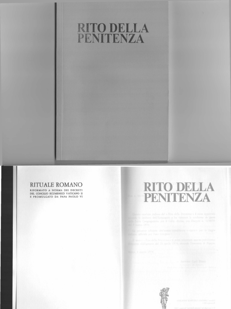 Questa versione italiana del R i t o della Penitenza stata approvata iccondo le delibere d e l l ' E p i s c o p a t o e ha ricevuto la conferma per il C u l t o d i v i n o , c o n Decreto n. da parte 1230/74 della Sacra Congregazione del 7 marzo 1974. La presente edizione dev'essere considerata tipica per la lingua