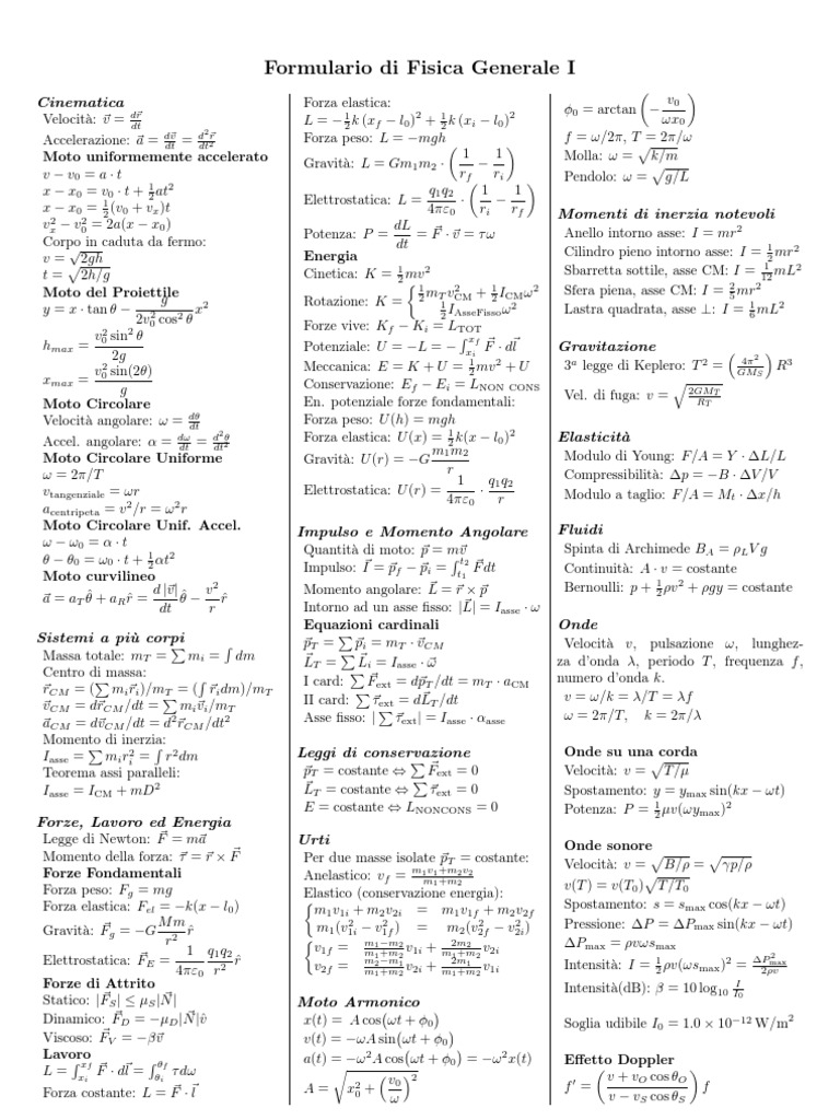 Formulario di Fisica Generale I