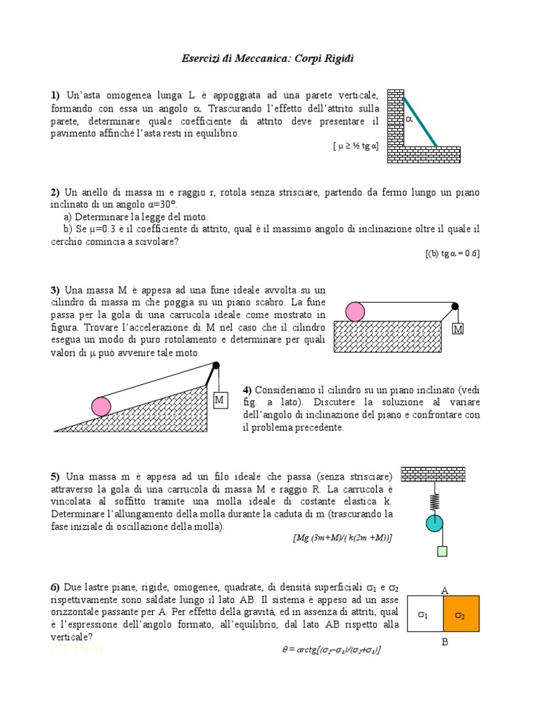 1) Unasta omogenea lunga L appoggiata ad una parete verticale, formando con essa un angolo . Trascurando leffetto dellattrito sulla parete, determinare quale coefficiente di attrito deve presentare il pavimento affinch lasta resti in equilibrio.