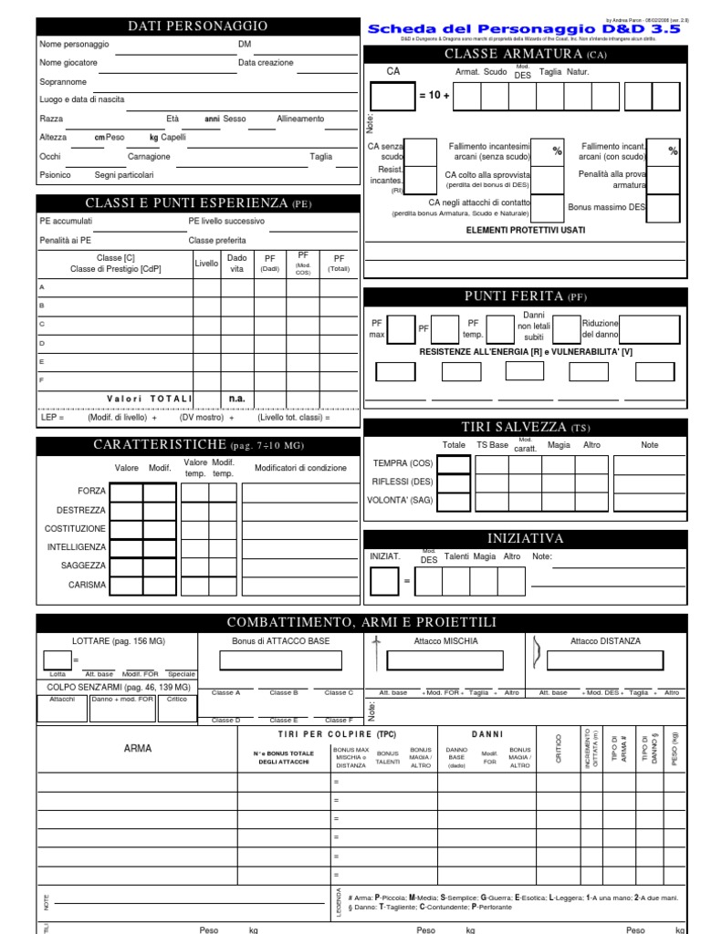 (specificare nelle note se si ha il talento Combattere con due armi normale, migliorato, superiore o perfetto)