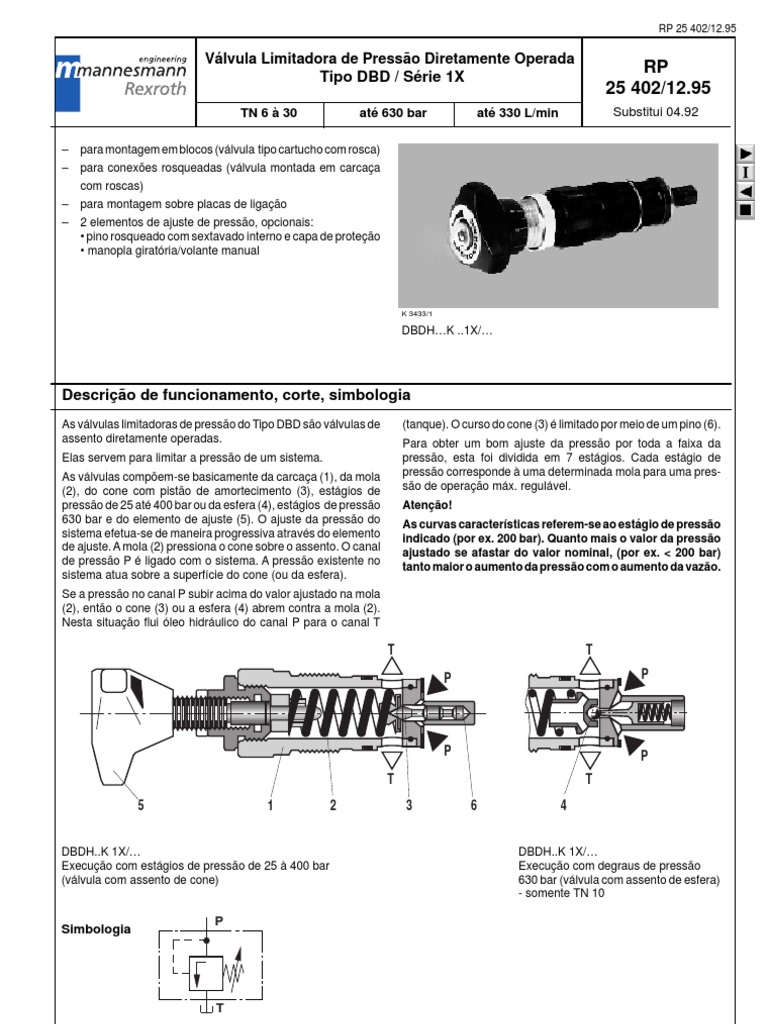 DBDH..K 1X/ Execuo com estgios de presso de 25 400 bar (vlvula com assento de cone)