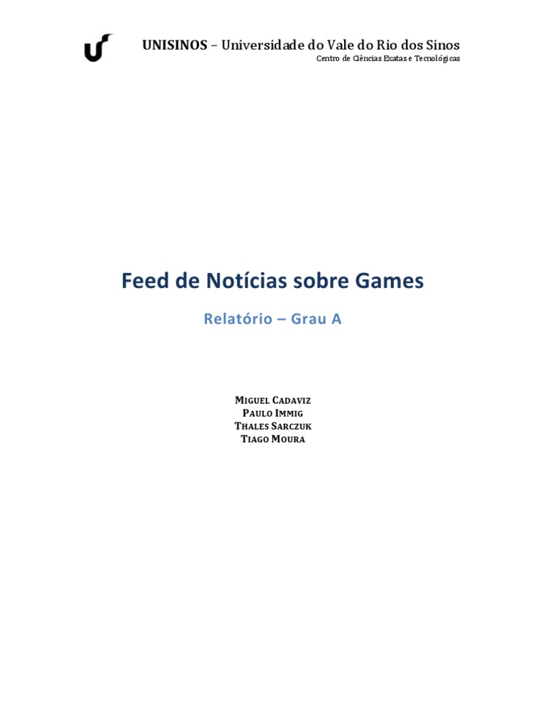 O sistema proposto neste trabalho tem um carater simples, cujo objetivo o fornecimento de notcias sobre lanamentos de jogos, independete de estilo, para o usurio em geral. O desenvolvimento foi proposto com o novo padro de interface grfica Microsoft, o chamado Modern UI Style (Windows Metro) e foi produzido para ser distribudo como uma aplicao para dispositivos que suportem Windows 8, como tablets e smartphones, contemplando os recursos comuns das interfaces e usabilidade. O objetivo do sistema tem funo informativa ele apenas apresenta as informaes disponibilizadas pelos desenvolvedores, com atualizaes online diariamente. Outro objetivo tambm, a funo de exibir propagandas comerciais para divulgao de empresas parceiras. Embora o usurio no receba links direto para realizar as compras do produto, espera-se que o usurio sinta-se compelido a buscar mais informaes sobre os ttulos que mais lhe agradam. O sistema tambm estaria capacitado a coletar dados a respeito do tempo gasto em cada artigo e dos artigos visitados, a fim de criar um banco de dados de interesses do usurio e alimentar um mecanismo que serviria recomendaes baseado nos dados histricos.