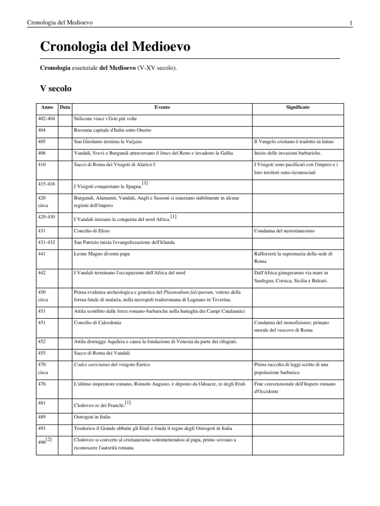 Cronologia Medioevo