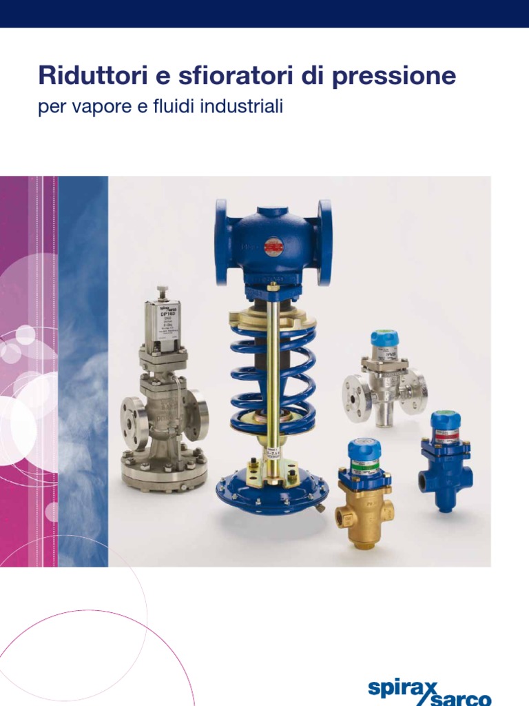Un sistema a vapore ben progettato se la caldaia produce vapore pulito, secco e pronto per limmissione ad alta pressione nella rete di distribuzione. Gi questa condizione garantisce una fornitura di vapor saturo di qualit elevata e costo complessivo minimo. Tuttavia, la maggior parte delle applicazioni richiede anche una riduzione di pressione nel punto di utilizzo; cos facendo, si ottengono i seguenti vantaggi: minor costo dinvestimento iniziale per lacquisto e linstallazione delle attrezzature. minor rievaporazione e, quindi, pi bassi costi desercizio. nessun dispositivo addizionale per la regolazione della temperatura, poich sufficiente il controllo della pressione del vapor saturo. possibilit di effettuare pi riduzioni di pressione in pi punti dellimpianto. Alcune applicazioni richiedono, invece, una regolazione di pressione a monte della valvola, allo scopo di mantenerla costante o disperdere quella in eccesso nella linea di distribuzione, per salvaguardare lintegrit delle apparecchiature ivi installate; in tal caso, si parla di sfioratore o valvola sfioratrice (o di sfioro) della pressione. Le valvole di riduzione e sfioro della pressione si dividono in due grandi famiglie: valvole autoazionate: non necessitano di unalimentazione dingresso e/o esterna. valvole azionate pneumaticamente: sono dotate di sistemi di comando pneumatico od elettronico. La scelta del tipo di valvola da impiegare dipende dalle esigenze applicative e dalle preferenze dellacquirente.