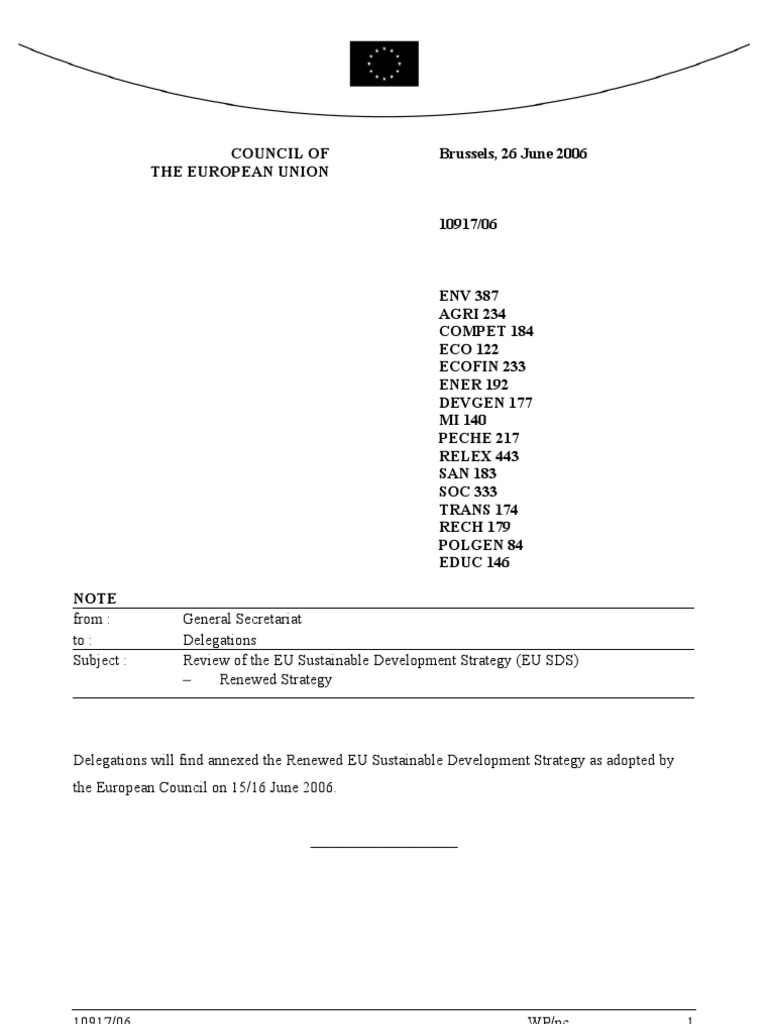 Delegations will find annexed the Renewed EU Sustainable Development Strategy as adopted by the European Council on 15/16 June 2006. ___________________