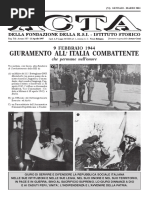 cancellazione dello schema sollevando lirritazione di Dalton il quale avrebbe parlato, anche in seguito, fino al 1945, di scarso ardimento dei suoi Italiani (11). Convinto, alla fine, che chi fa sa s fa per tre Hugh Dalton tent nuovamente il colpo nellagosto 1942. Il 26 di quel mese, infatti, tre commandos britannici sbarcarono nei pressi di Riccione dal sommergibile Turbolent con lordine di uccidere Musso, in quel momento in villeggiatura nella cittadina romagnola, per poi raggiungere la Svizzera grazie ad alcune complicit locali. Catturati da uomini della Regia Guardia di Finanza poco dopo aver preso terra i tre finirono in un campo di prigionia, mentre il Primo Ministro italiano rientr, subito dopo, a Roma in volo (12). La discrezione che ha avvolto, fino a ieri, queste iniziative azioniste , di per se, tanto pi spiacevole in quanto ha impedito, tra laltro, per molto tempo di apprezzare limportanza, ai fini storici e correnti, di un dialogo per cos dire socratico verificatosi mediante uno scambio di lettere avvenuto nel gennaio 1942 tra il Foreign Office, ovvero il Ministero degli Esteri inglese, e il SOE. Loggetto del contendere tra le due organizzazioni era il valore da attribuire alle promesse che i Servizi britannici, sempre tra loro divisi e in guerra, avevano formulato nei confronti dei loro interlocutori italiani, parimenti lun contro laltro armati, anche se accumunati dal comune desiderio di liberare lItalia dal fascismo e di prendere il potere al suo posto. La serena e conclusiva risposta del Ministro degli Esteri inglese fu quella di non preoccuparsi troppo. Lunico scopo delle varie promesse pi o meno generose fatte era, infatti, soltanto quello di determinare una German occupation della penisola in seguito a una crisi politica romana. Dopo di che il peso delle successive, reciproRivista Marittima-Maggio 2012