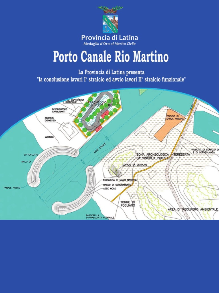 sto canale di bonifica la cui origine ed assetto plano-altimetrico sono riconducibili ai lavori della Bonifica Integrale della Pianura Pontina condotti negli anni 30 del secolo scorso. Dal 1993 la Provincia di Latina ha avviato una serie di indagini di campo, studi specialistici ed attivit di progettazione relativi ai lavori necessari per la riqualificazione del tratto terminale del canale di Rio Martino soprattutto al fine di promuovere e controllare uno sviluppo ed una gestione integrata delloriginaria destinazione duso del canale come punto di approdo. Questa iniziativa della Provincia di Latina si concretizzata con la conclusione nel 2009 delliter programmatico ed approvativo sancito dalla sottoscrizione dellAPQ-2009 che riporta in allegato il Progetto Definitivo Generale di riqualificazione del porto canale di Rio