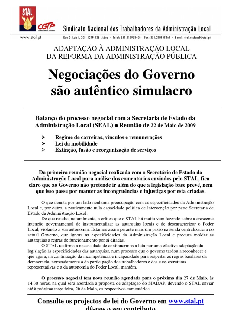 Consulte os projectos de lei do Governo em www.stal.pt