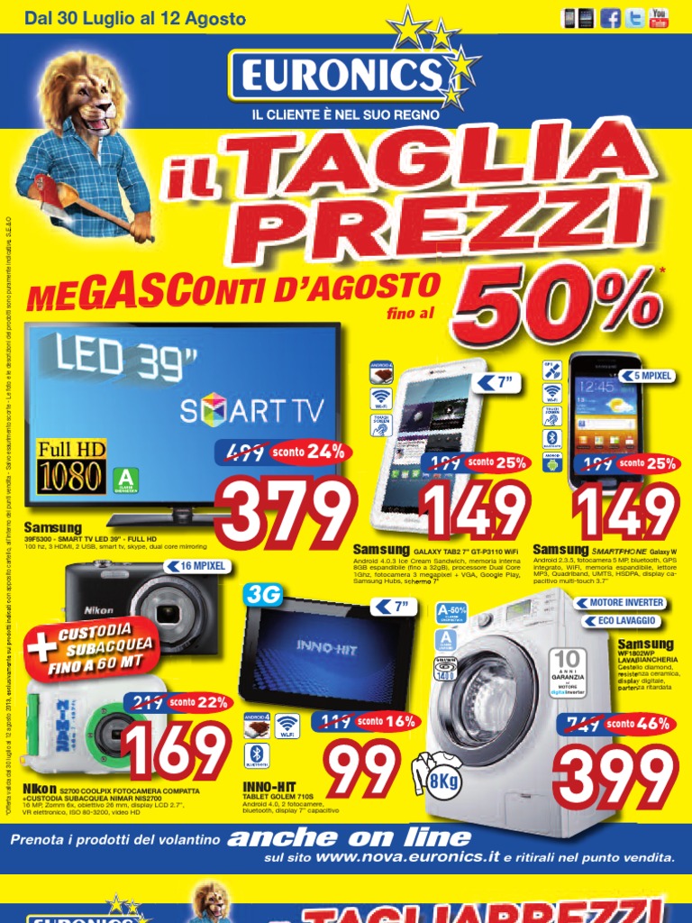 *Offerta valida dal 30 luglio al 12 agosto 2013, esclusivamente sui prodotti indicati con apposito cartello, allinterno dei punti vendita - Salvo esaurimento scorte - Le foto e le descrizioni dei prodotti sono puramente indicative. S.E.&.O
