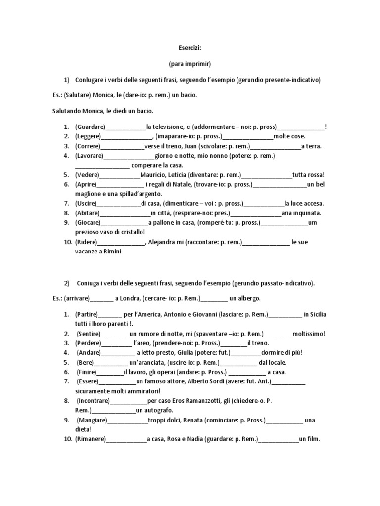 1) Conlugare i verbi delle seguenti frasi, seguendo lesempio (gerundio presente-indicativo)